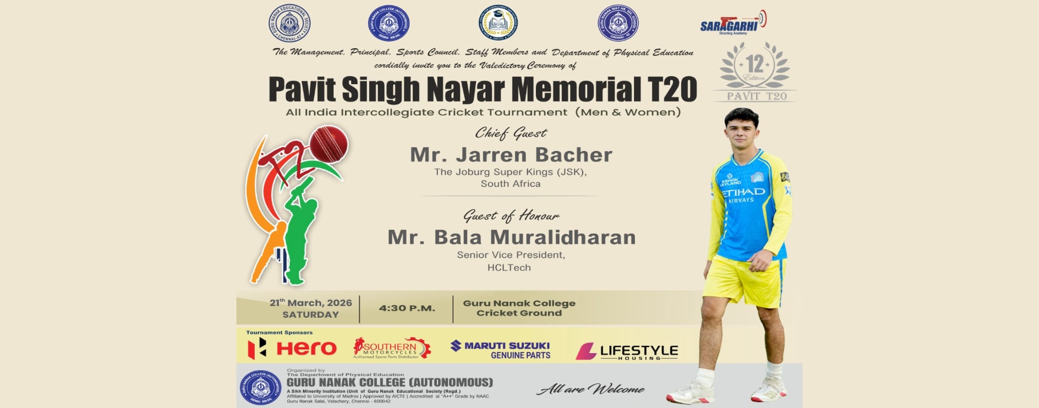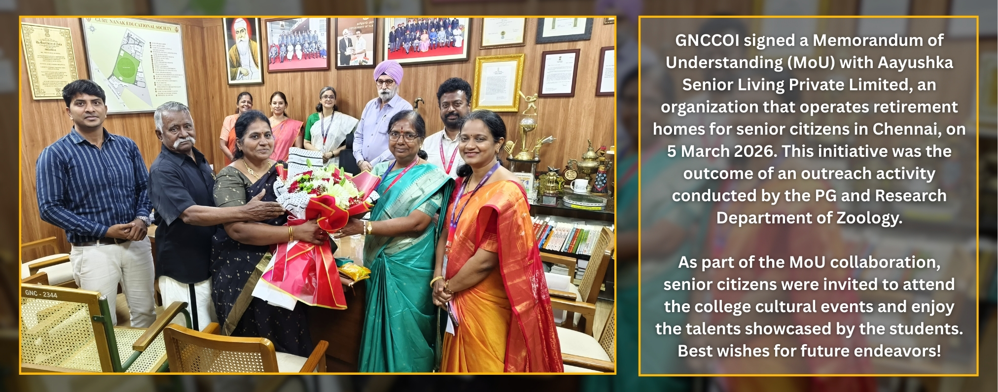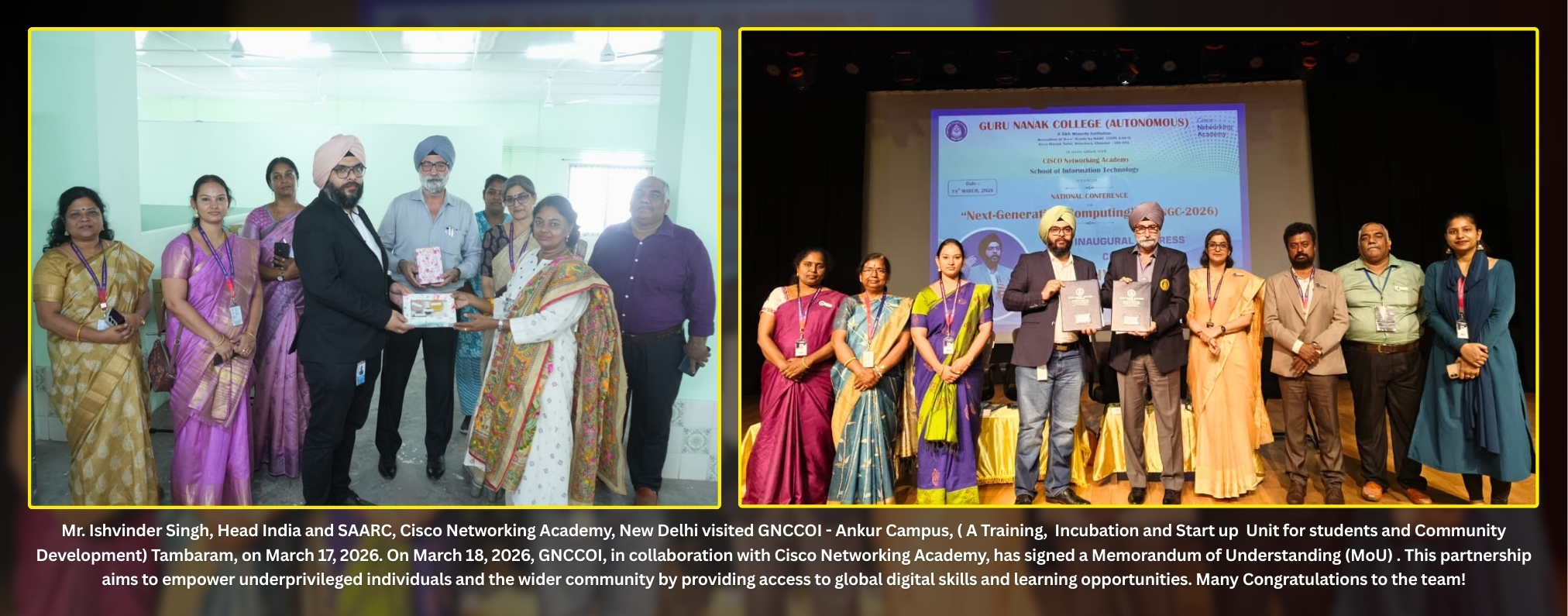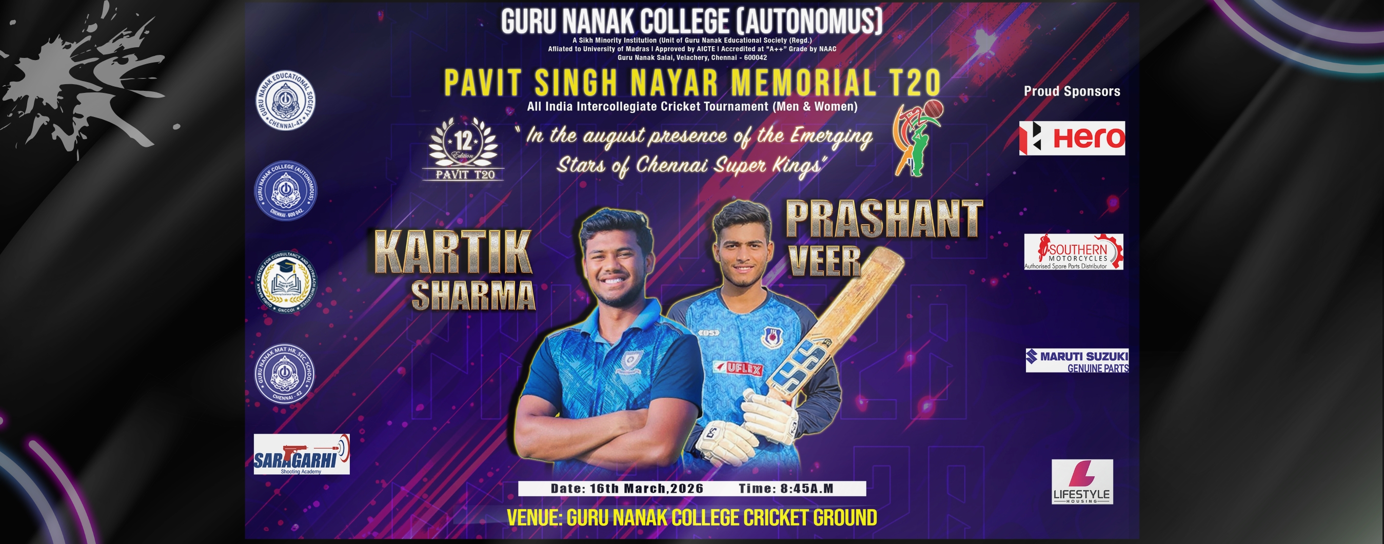 The Guru Nanak College, (GNC) in a lush green 25-acre campus, cradled between the Raj Bhavan and the campus of the IIT-Madras, facing the Guru Nanak Salai, is located in Velachery, South Chennai - the gateway to the IT expressway of Tamil Nadu.