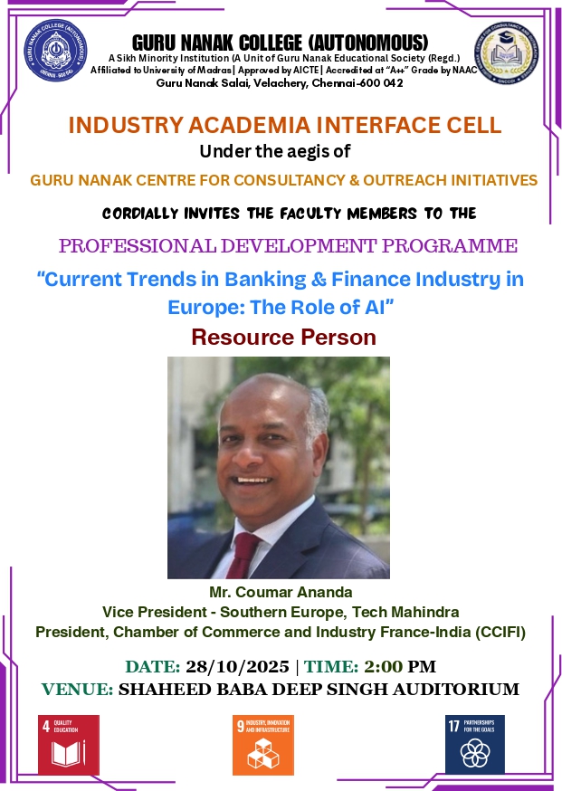 Industry Academia Interface Cell organises PDP on Current Trends in Banking and Finance Industry in Europe - Role of AI