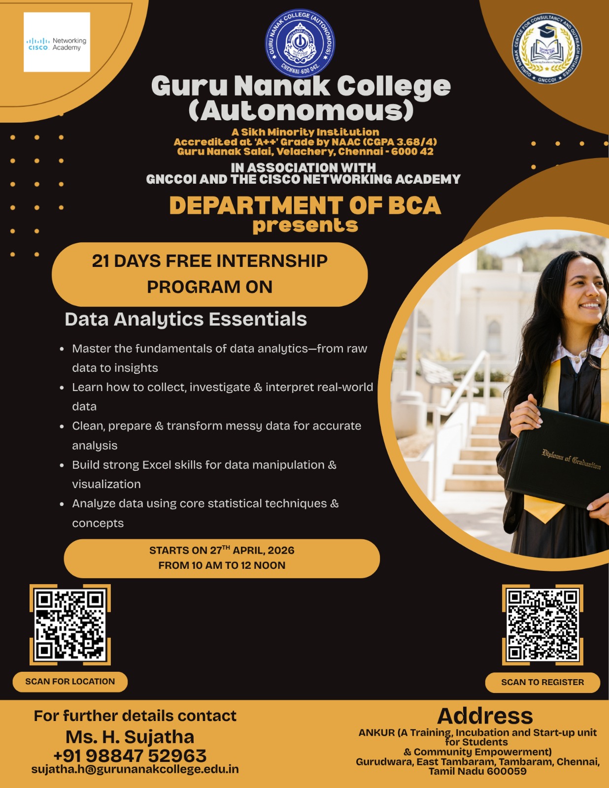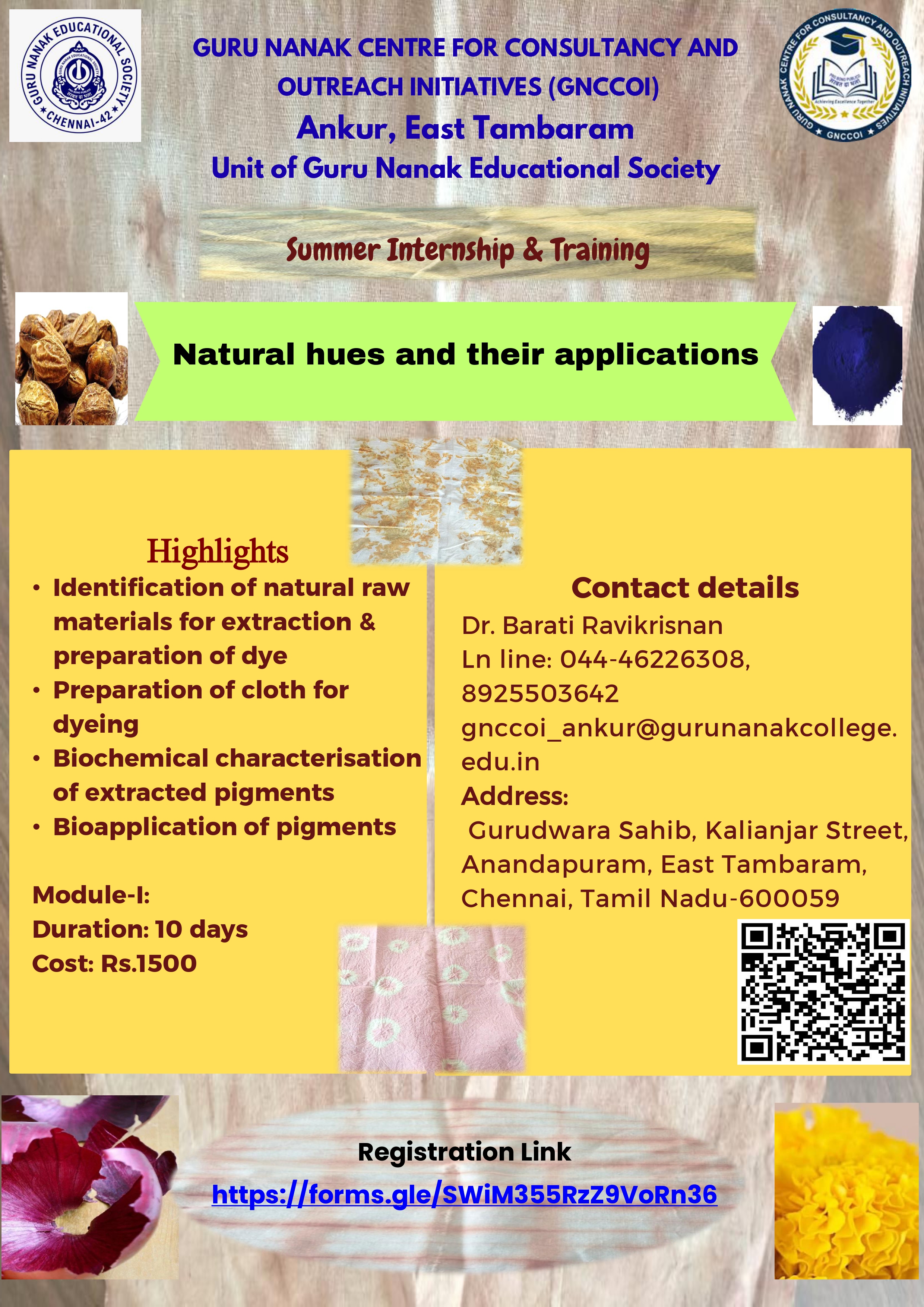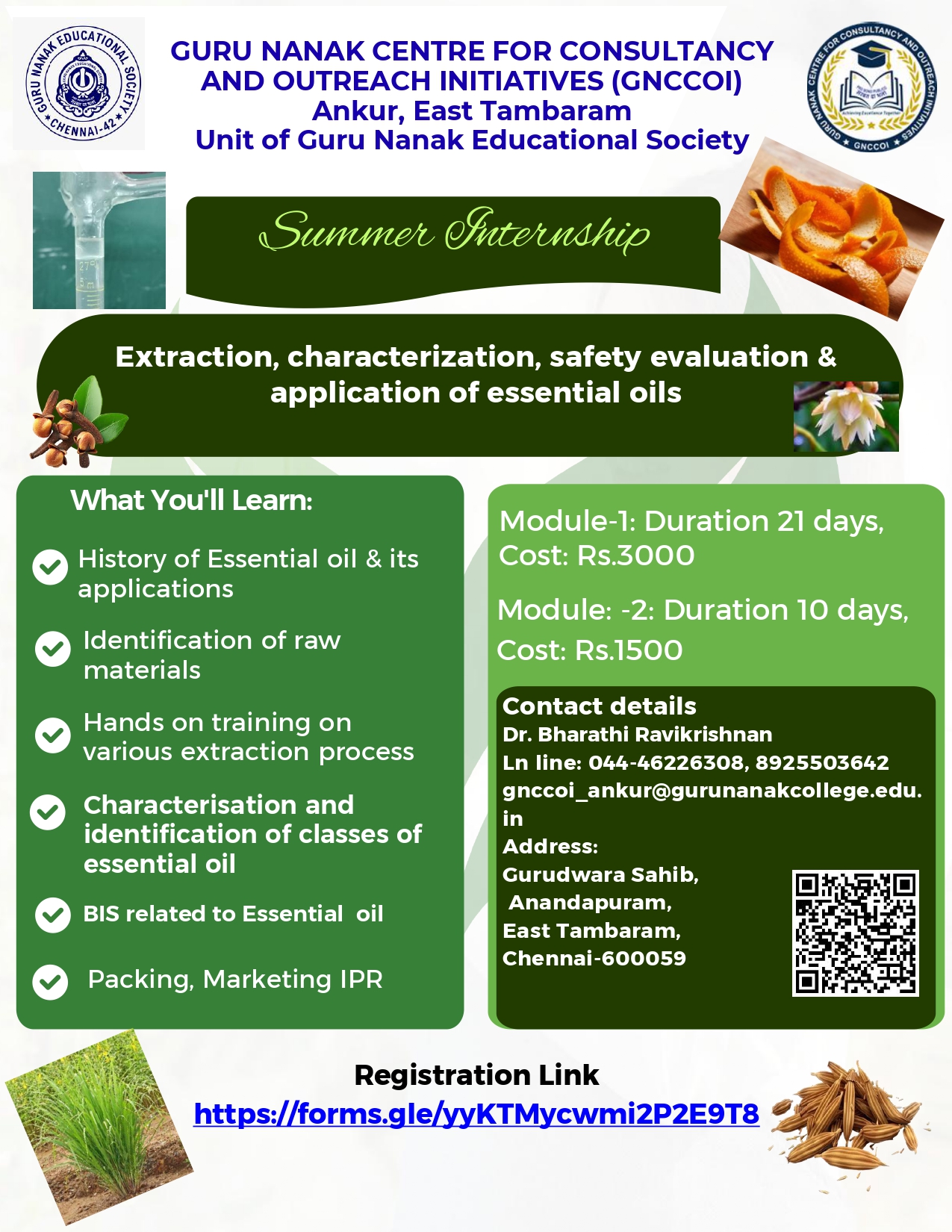 Under the aegis of the Guru Nanak Centre for Consultancy and Outreach Initiatives (GNCCOI), Guru Nanak College (Autonomous), Chennai, successfully conducted a series of specialized summer internship programmes targeting external students, researchers, and academia during May-June 2025. These programs, hosted by different departments, aimed to equip participants with hands-on experience, theoretical foundation, and practical skills in niche biosciences domains.