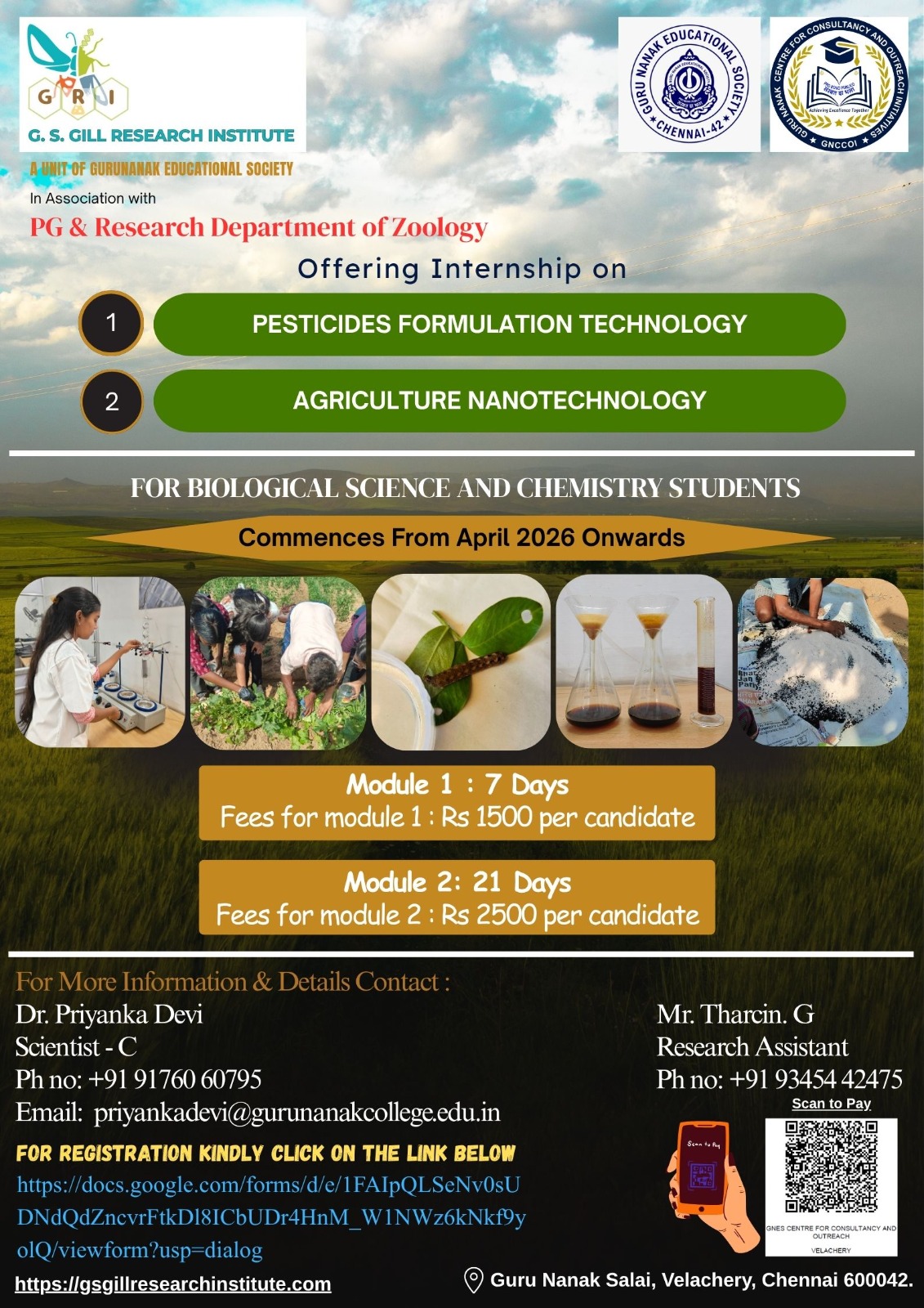 Under the aegis of the Guru Nanak Centre for Consultancy and Outreach Initiatives (GNCCOI), Guru Nanak College (Autonomous), Chennai, successfully conducted a series of specialized summer internship programmes targeting external students, researchers, and academia during May-June 2025. These programs, hosted by different departments, aimed to equip participants with hands-on experience, theoretical foundation, and practical skills in niche biosciences domains.