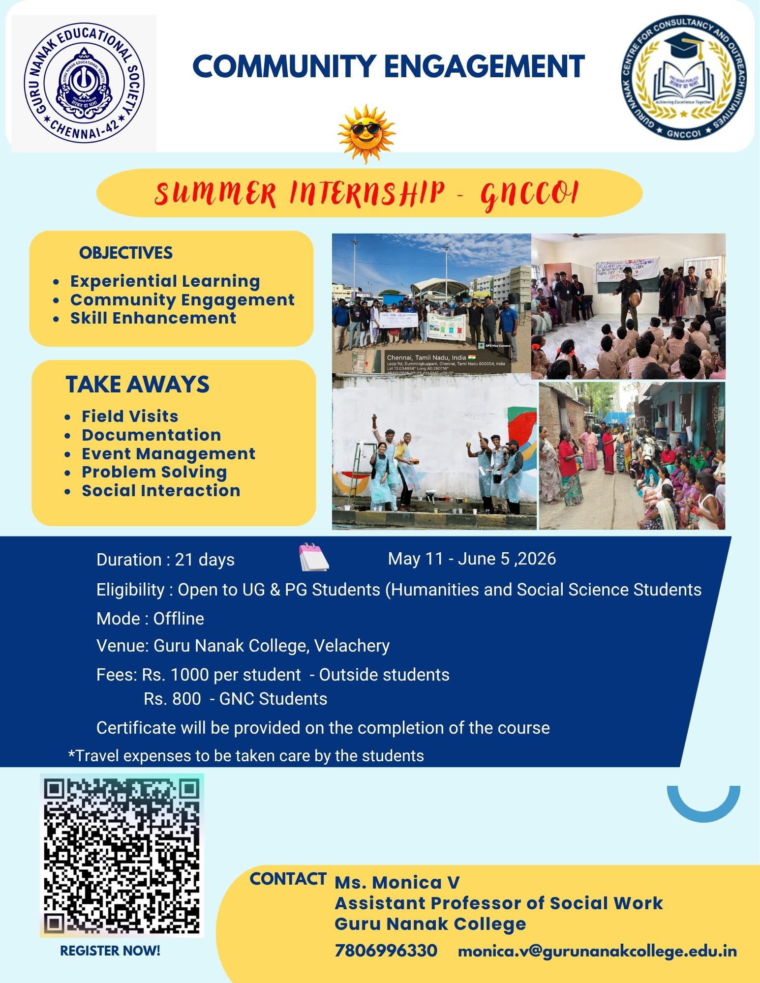 Guru Nanak Centre for Consultancy and Outreach Initiatives aims to partner with corporates, educational institutions, government organisations, NGOs, communities and individual to engage and empower them with requisite tools for a sustainable and inclusive growth and to create positive impact on the society by delivering customised programmes for enhancing their betterment and quality of life.